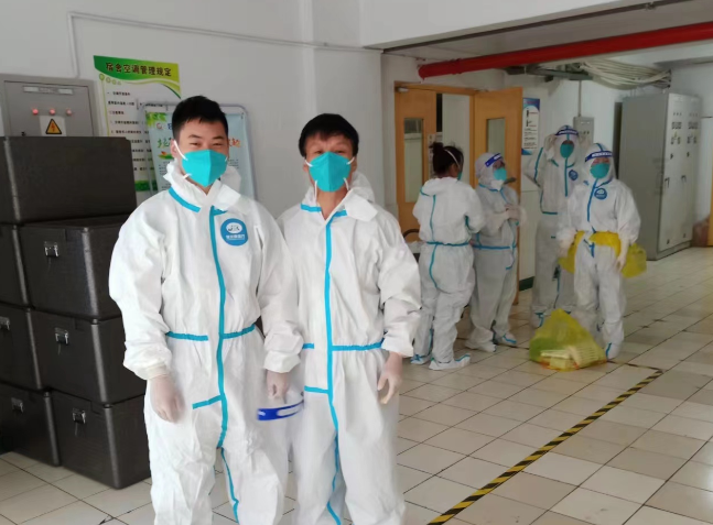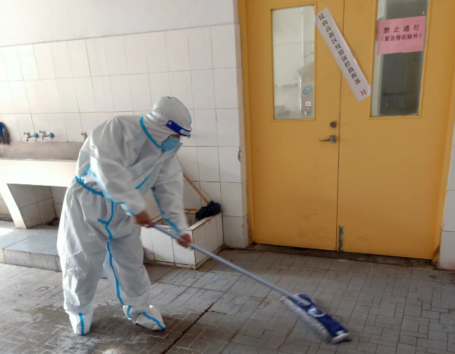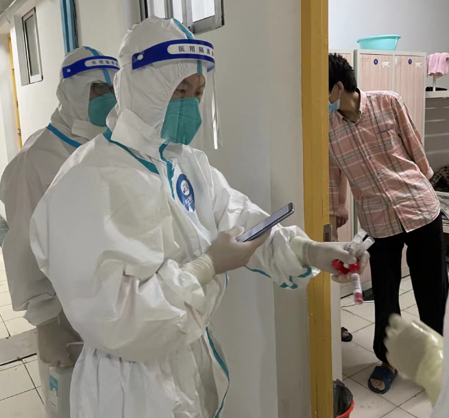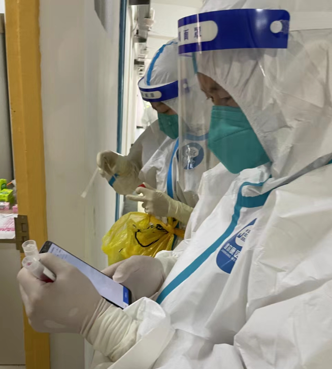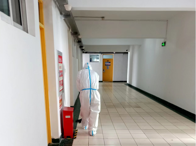 分發(fā)完餐食,稍作等待,即要開始一天的“必須課”——核酸檢測。由于社會面的輪番核酸,專業(yè)的醫(yī)護資源本就吃緊,面對封控區(qū)的特殊環(huán)境和人手不足的情況,我們這些志愿者們又站了出來,經過統(tǒng)一培訓,在醫(yī)護人員的考核之后,擔負起給整個宿舍區(qū)做核酸檢測的重任。從信息錄入到核酸采集,一絲一毫,不敢懈怠,統(tǒng)一收集完畢后,又開始忙里忙外的給宿舍清潔消殺,確保環(huán)境的健康。汗水打濕了他們的鬢角,模糊了護目鏡后的視線,但是,我們的勇士仍然義無反顧。