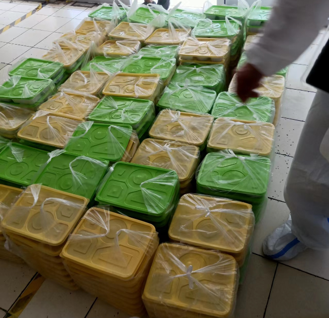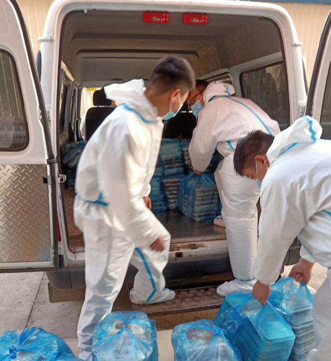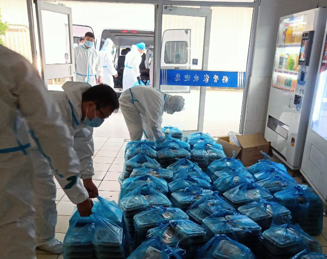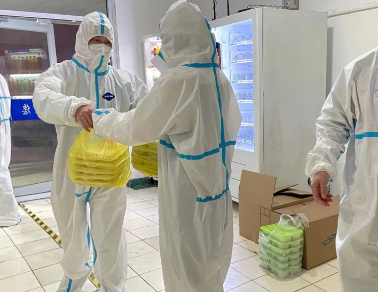 清潔完畢,又到了飯點時刻,熱騰騰的午飯在志愿者們的手中傳遞,也是在給每一位靜默在宿舍里的同事們,帶去溫暖和希望。讓大家都知道,困難時刻,我們攜手同行,社會,政府,企業(yè),都在竭盡全力,保障民生物資,守護大家的安全。此刻,我們要做的就是,守住這份“靜默”!