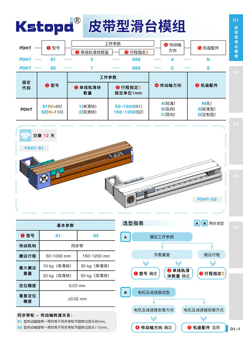 搬運(yùn)行程:50mm~1000mm(S1)/150mm~1200mm(S2)