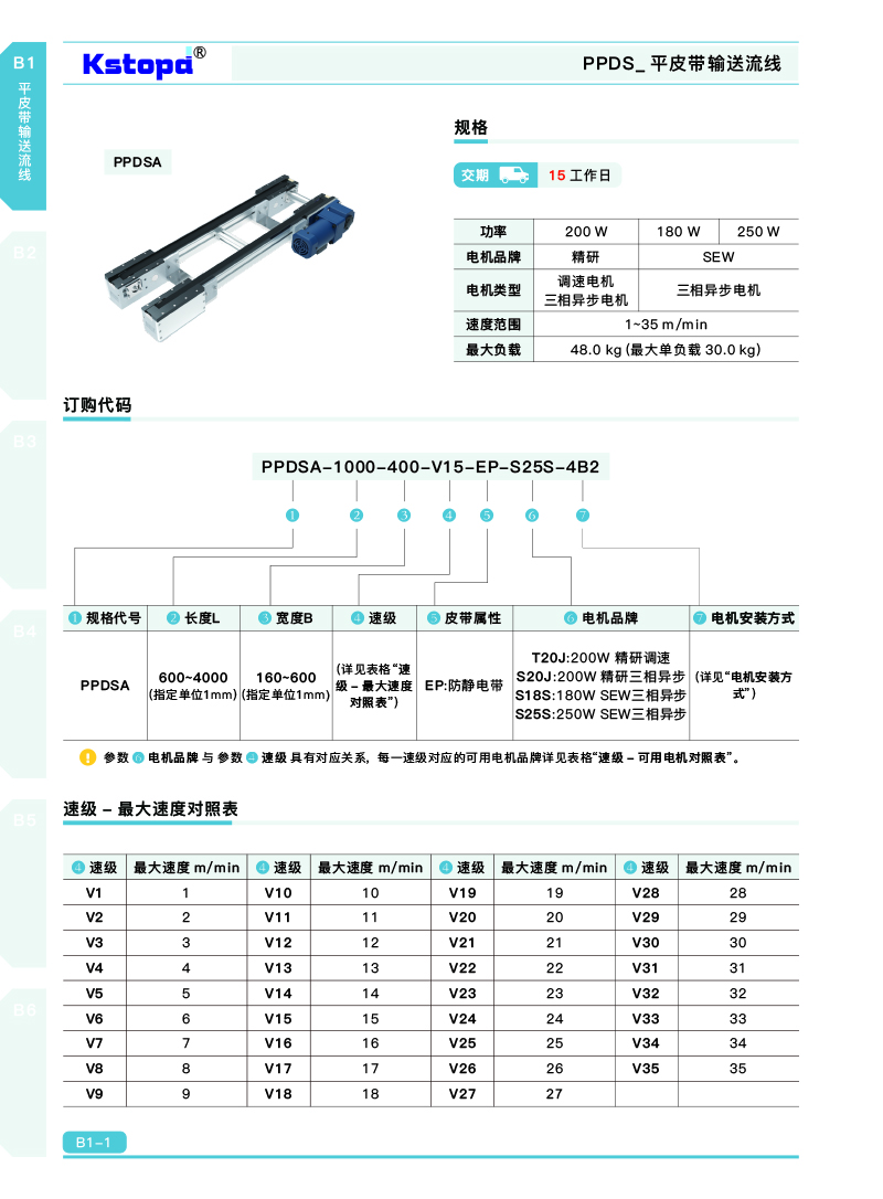 性能: 電壓:220V AC 電機(jī)功率:200W 輸送速度:2m/min-35m/min 負(fù)載能力:最大40KG 皮帶屬性:防靜電